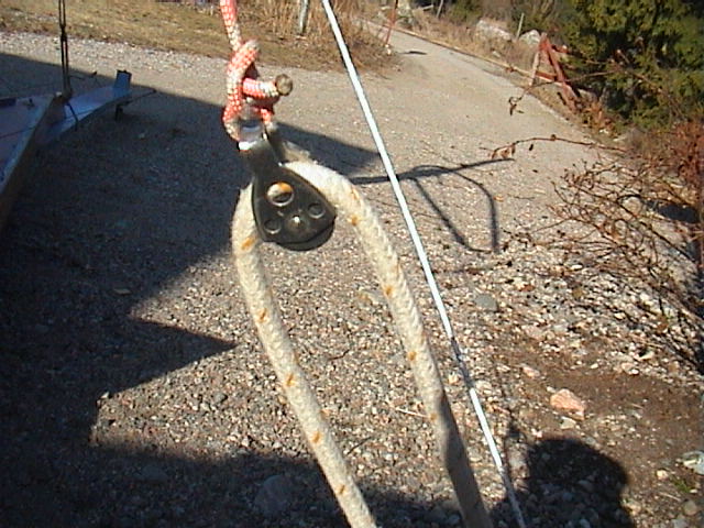 Mastfot med talja från Biltema för 49kr.