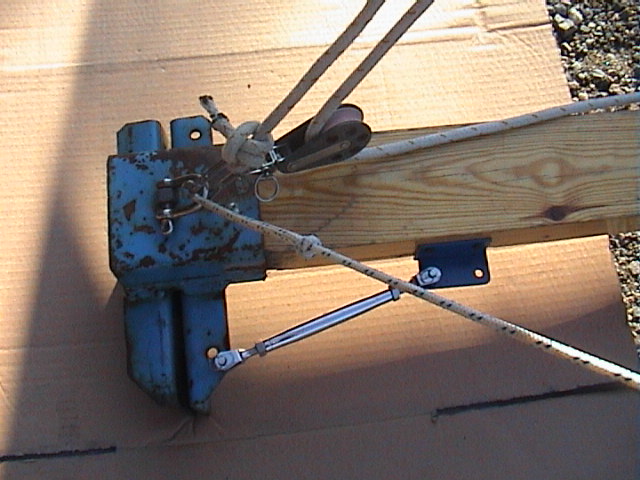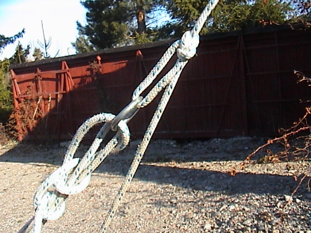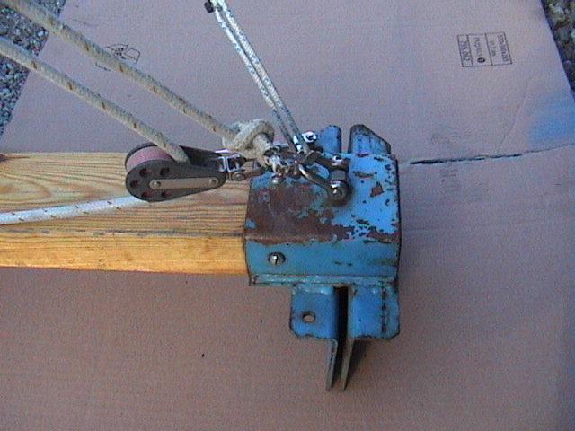 via ett extra block fäst i bommen. När man håller skotet