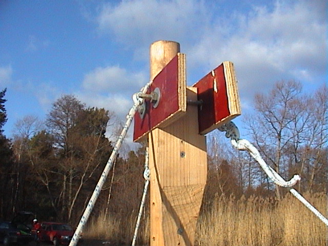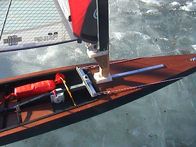 sätter du en konsol som stöd för masten. Ta två plywoodbitar,